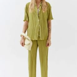 Best Sale π Women’s Out From Under Plisse Button-Down Top Chartreuse β