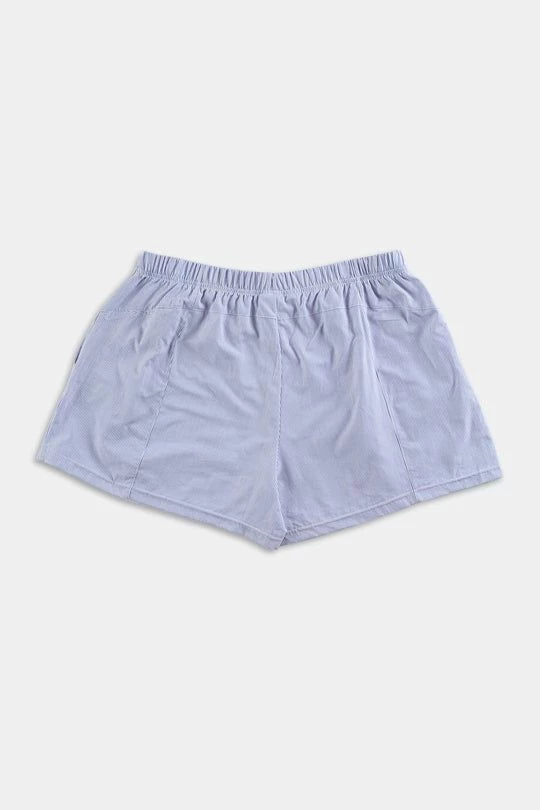 Relaxed boxer style short with side pockets. 3″ inseam. Upcycled from a men’s Oxford button down shirt.