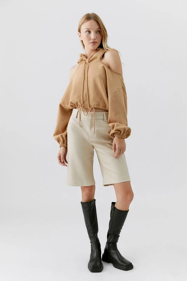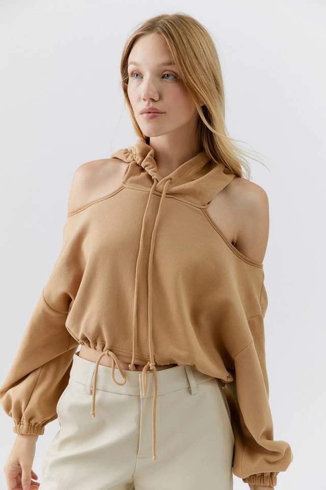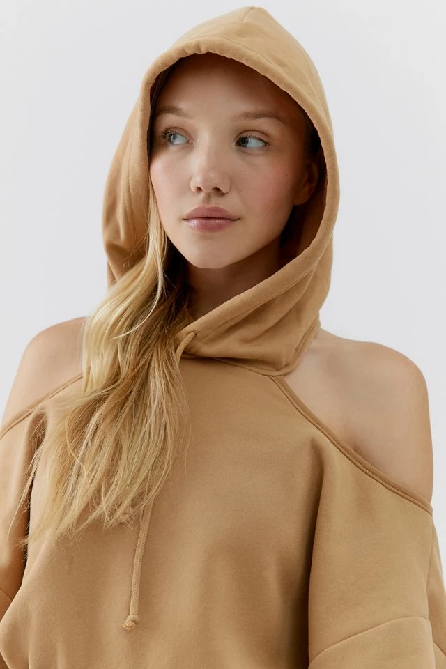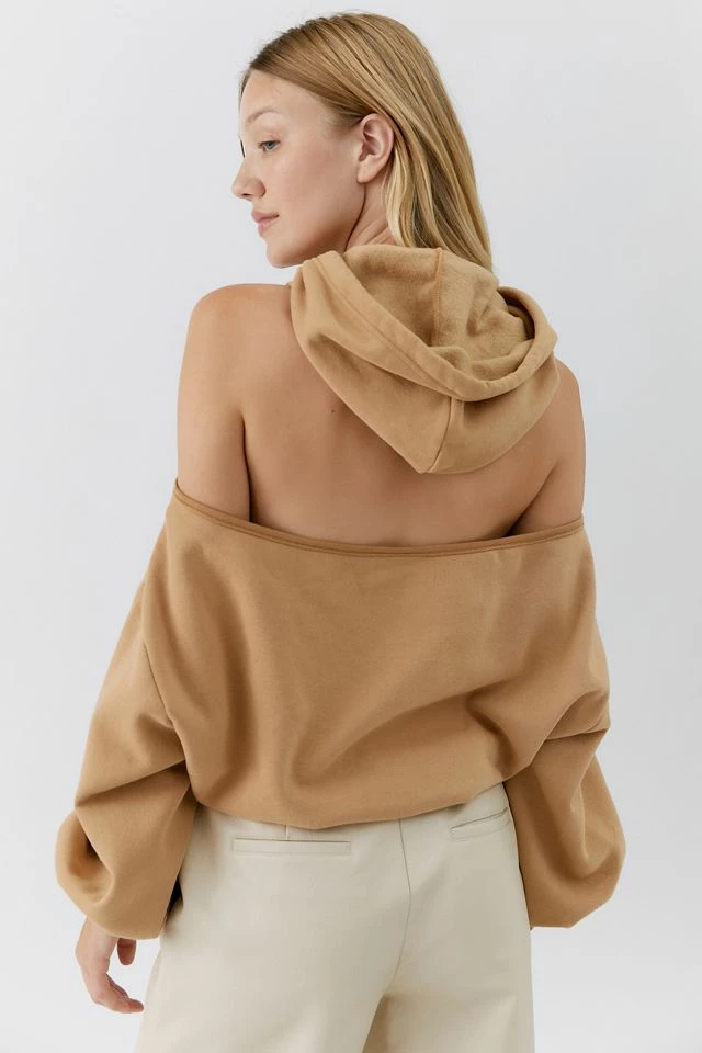 Cozy hoodie silhouette gets a contemporary update by Out From Under. Cropped just above the waist and cut in a relaxed fit with cutaway shoulders and an open back. Finished with a hood at the back and a cinched hem. UO exclusive.