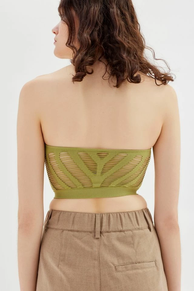Tube top by Out From Under in an ultra soft + stretchy seamless knit. Cropped above the waist with a strapless neckline and complete with slashed cutouts allover. UO exclusive.