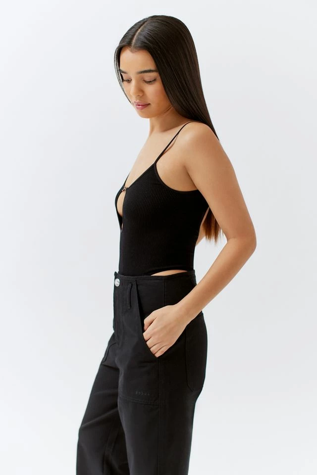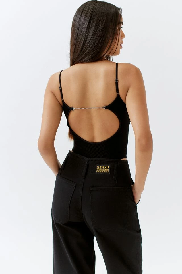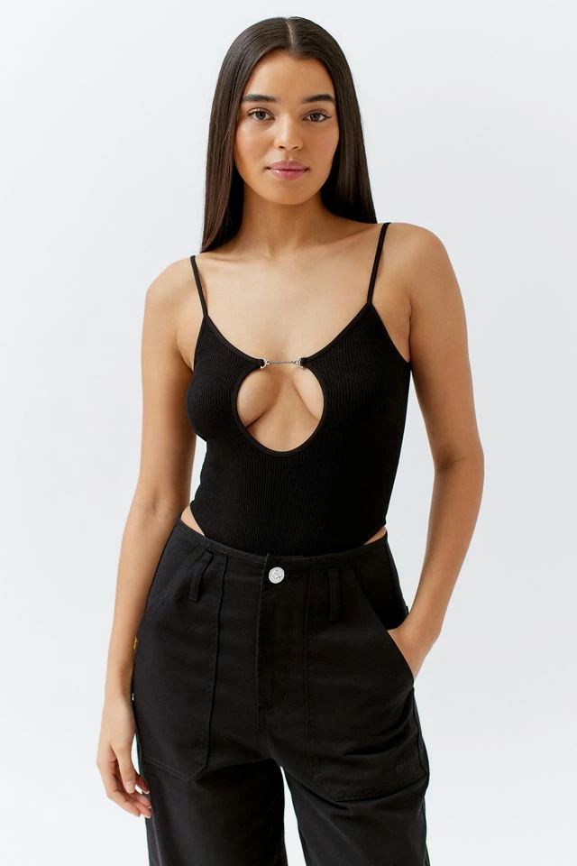 Out From Under bodysuit you’ll want to wear again and again. Crafted from a ribbed knit material in a bodycon silhouette with cutouts at the front and back. Complete with chain hardware. UO exclusive.