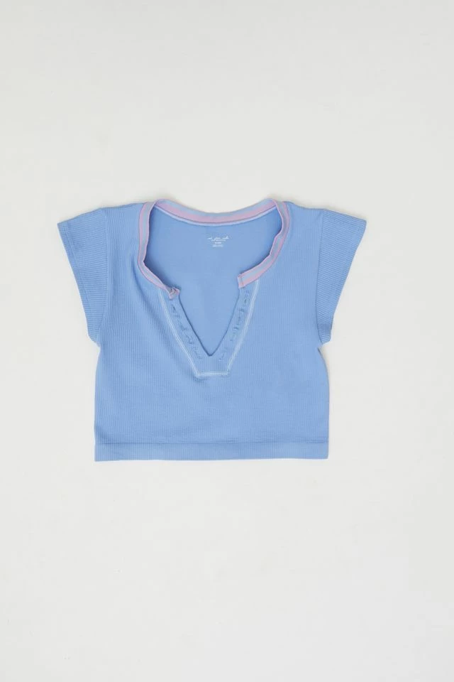Everyone’s favorite top from Out From Under. Cropped short in our signature seamless knit for a stretch-to-fit body-hugging silhouette. Notched at the neck with top-stitched detailing. Only at UO.