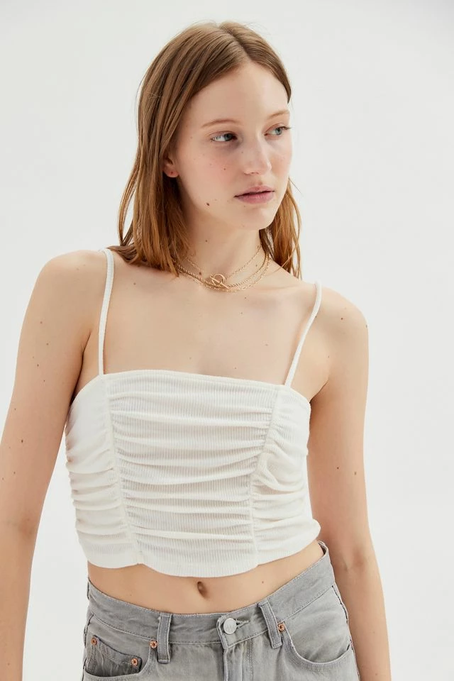 Cropped cami by Out From Under with a square neckline and a fitted silhouette. Hits above the waist and finished with ruching at the front. Only at Urban Outfitters.