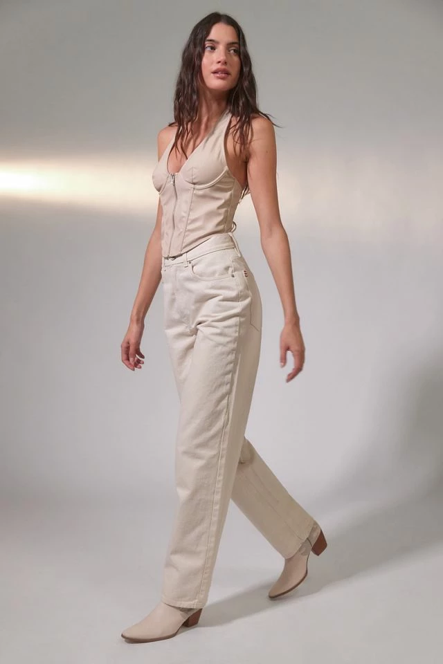 Strut your stuff in this vampy faux leather corset top by Out From Under. In a halter silhouette with underwire cups, boning, lace-up back and a zipper down the front. Made of poly fabric with a polyurethane coating.