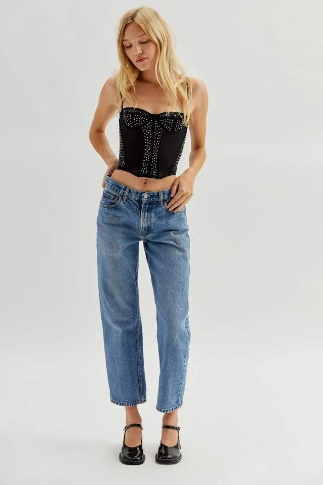 Irresistible corset from Out From Under made from a body-hugging stretch fabric with a fitted bodice and underwire cups. Decorated with diamante detailing for an eye-catching finish and topped with adjustable spaghetti straps and hook-and-eye back closures. Only at UO.