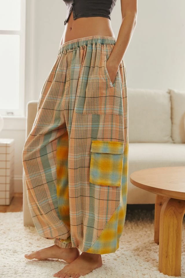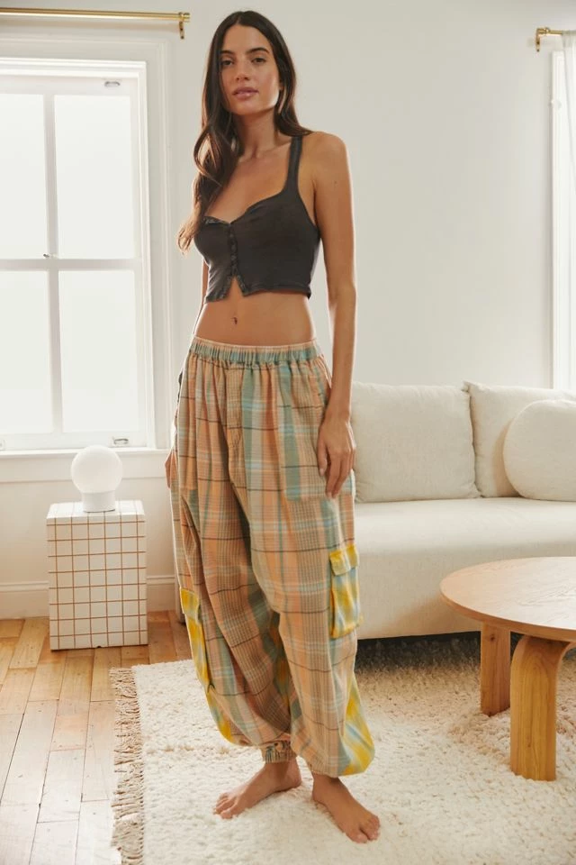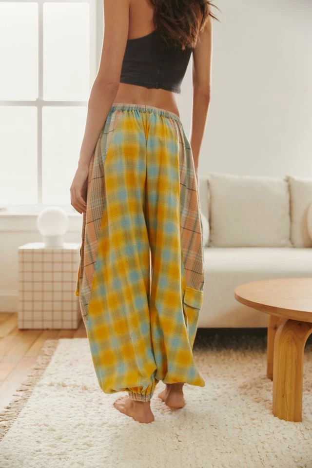 Out From Under pants in a super-soft plaid flannel. Cut with a low-rise and a drapey wide-leg with cinched cuffs. Finished with foldover pockets at the legs. Find it only at UO.