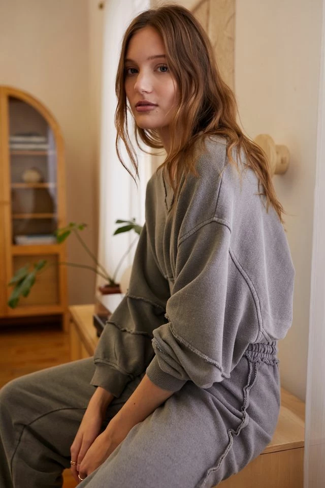 V-neck pullover sweatshirt by Out From Under. Cropped above the waist in a relaxed fit and dropped shoulders. Complete with seamed details throughout and ribbed trim. Only at UO.