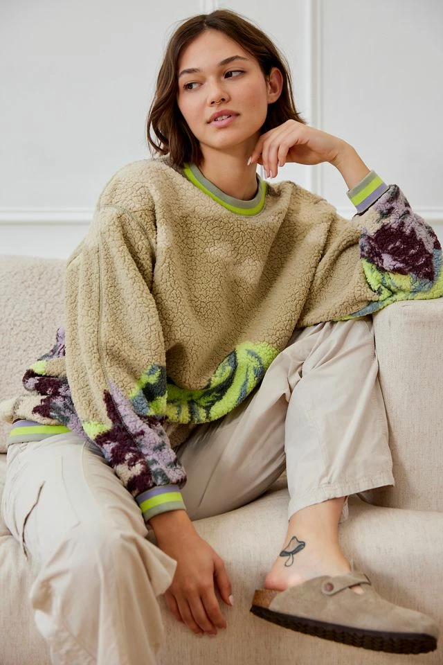 An essential pullover sweatshirt by Out From Under made even more cozy with sherpa fleece. Cut with a crew neck and a relaxed fit. Complete with dropped shoulders and ribbed hems. Only available at Urban Outfitters.