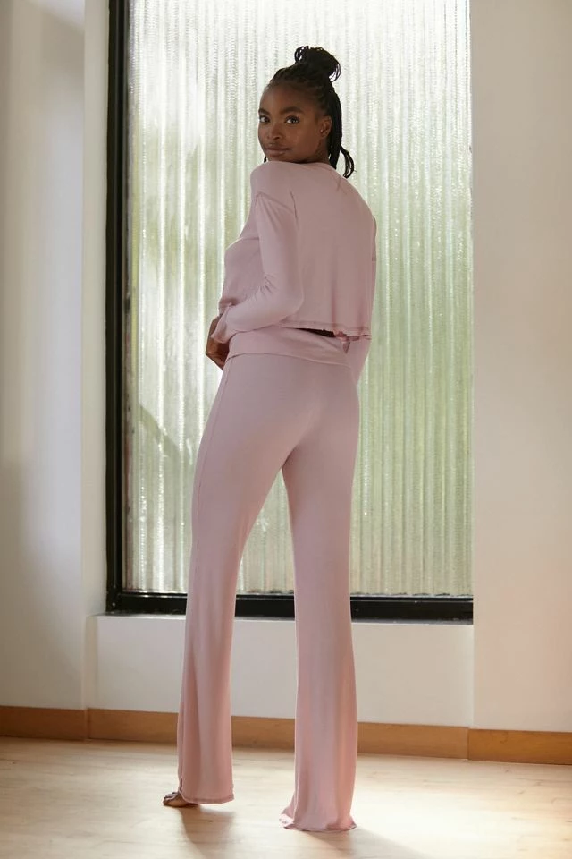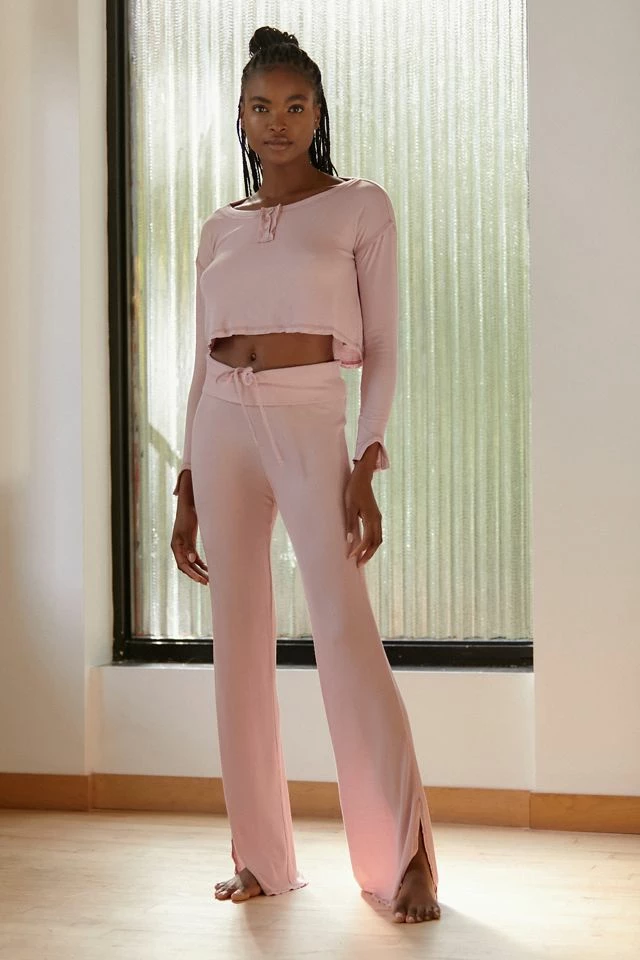 Soft and dreamy lounge pants by Out From Under with a foldover waistband. Easy and relaxed silhouette with a wide-leg and split hems. Topped with an adjustable tie at the front waistband. Only at UO.
