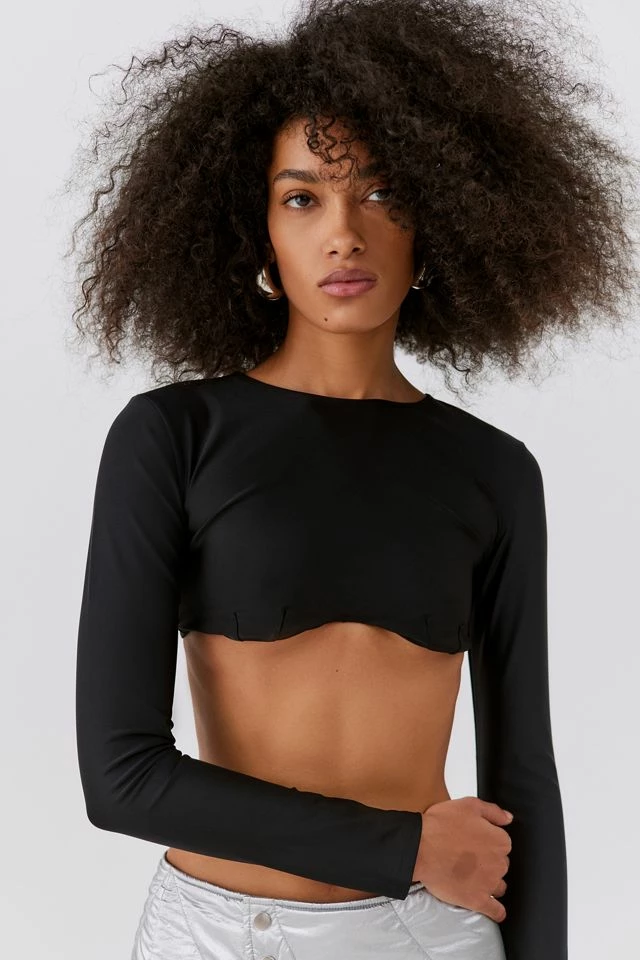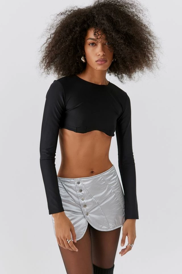 Long sleeve Out From Under tee in our most cropped silhouette. Slim-fitting style hits just below the bust with a crew neckline. Complete with seamed detailing at the hem.