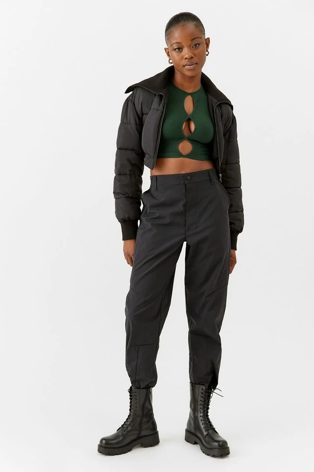 Play with shapes in the Violette wrap top by Out From Under featuring three cutouts down the front. Pullover silhouette is closure-free, made of stretchy seamless fabric with a closed back.
