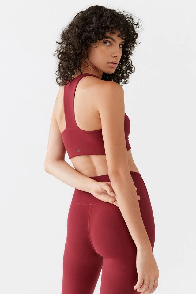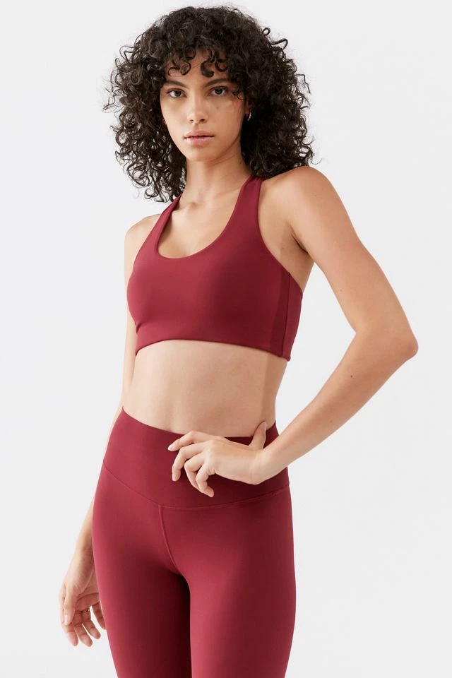 Lightweight t-back sports bra from Splits59. Sweat-wicking fabric offers a quick dry and medium support for your favorite barre and yoga classes. Made with a soft, second skin comfort and thick shoulder straps at the scoop neck. Designed for every movement level, Splits59 champions intelligent design with their line of soft, stretchy activewear. The Los Angeles-based brand creates leggings, sports bras, tanks and more that move with you and offer surprising hits of color and fresh details.